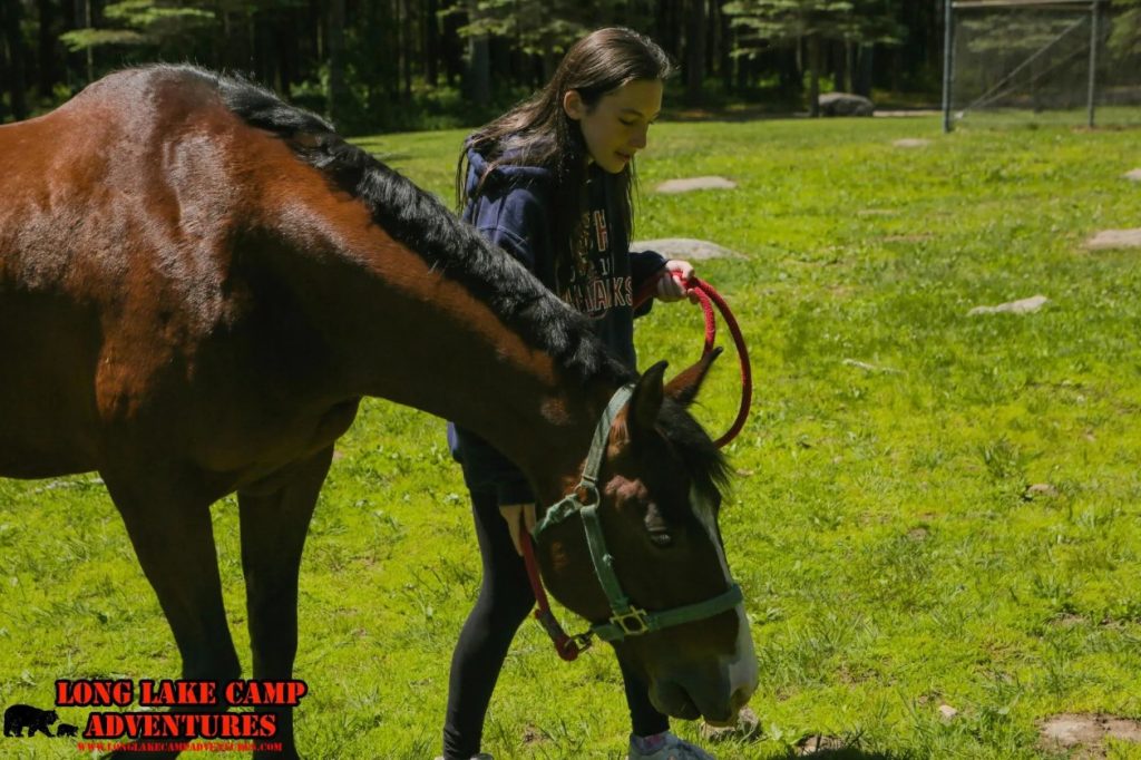 We’ve Said It Before And We’ll Say It Again…Long Lake Loves Its Horses! Campers At Adventure Camp Can Spend Everyday Walking, Grooming, And Riding Our Horses! We Can Accommodate Everyone From Beginners to Advanced Riders, All Through Our Acres And Acres Of Our Private Trails! Our Horses Names Are Jackson, Sampson, Kai, Lady, Jasmine, Frank, Marbles, And The 2 Newest Members Of The Family, Splash And Bella!! These Horses Spend All Year Up At Camp Enjoying Their Big Barn And The Fresh Air! Come Spend A Summer With Us This Year And Spend Some Quality Time With Our Horses Yourself!