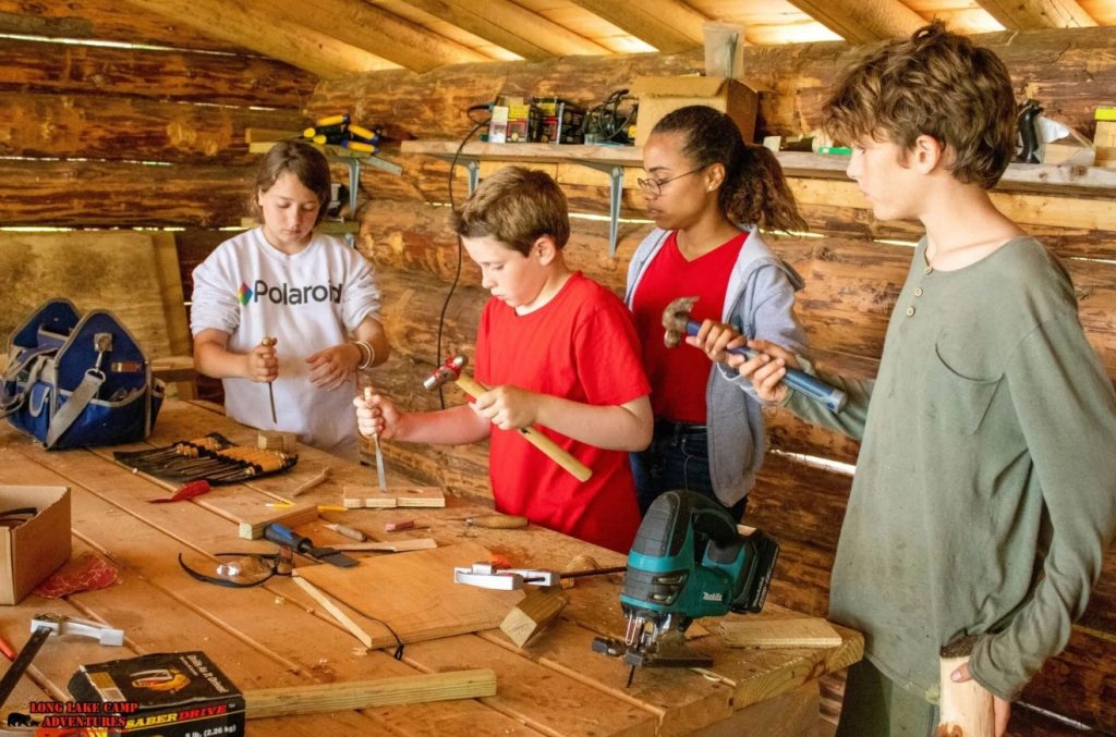 There Are A Myriad Of Ways To Explore Your Creative Mindset At Long Lake Camp Adventures! We Have Robotics, Blacksmithing, Automotive Restoration, The Soapbox Derby, Art, Bushcraft, And More! Woodworking Is Long Laved Activity Here At Camp! Under The Guidance Of Expert Staff, Campers Can Use State Of The Art Tools And Materials To Create Whatever They Put Their Minds To! Campers Have Made And Brought Home Dog Houses, Tables, Desks, Chairs, Bird Houses, Battle Axes, Shields, And Everything In Between! With Small Class Sizes For One-On-One, Hands On Learning, Long Lake Is A Great Place For A Maker To Flourish! Take A Look At These Pictures For Our Awesome Woodworking Program And Tell Us What You Want To See Us Build Next Summer! Afterwards, Please Browse Around Our Website Or Call Us Anytime For More Information On Camp Or The Enrollment Process!